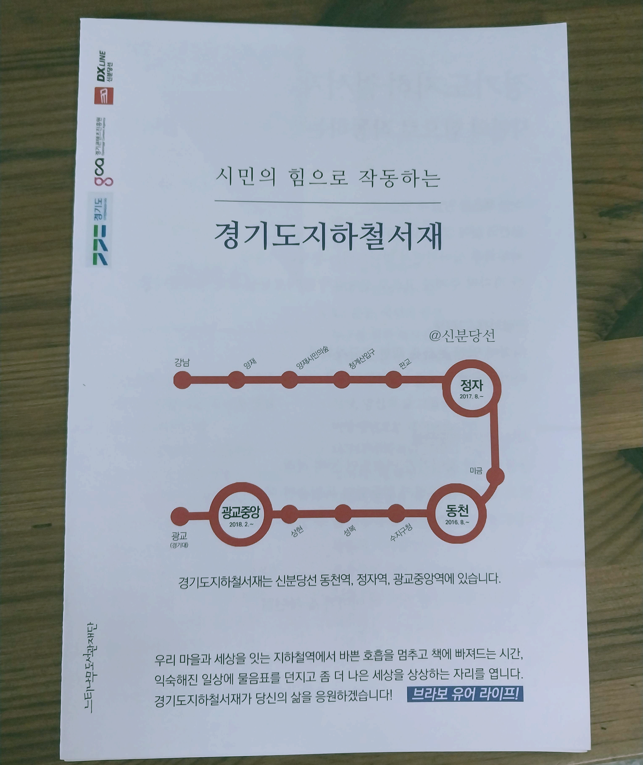 오늘은 정자역에서 환승하기 위해 내렸다가 신분당선에 있는 '경기도 지하철 서재'에 대해 알게 되었습니다.