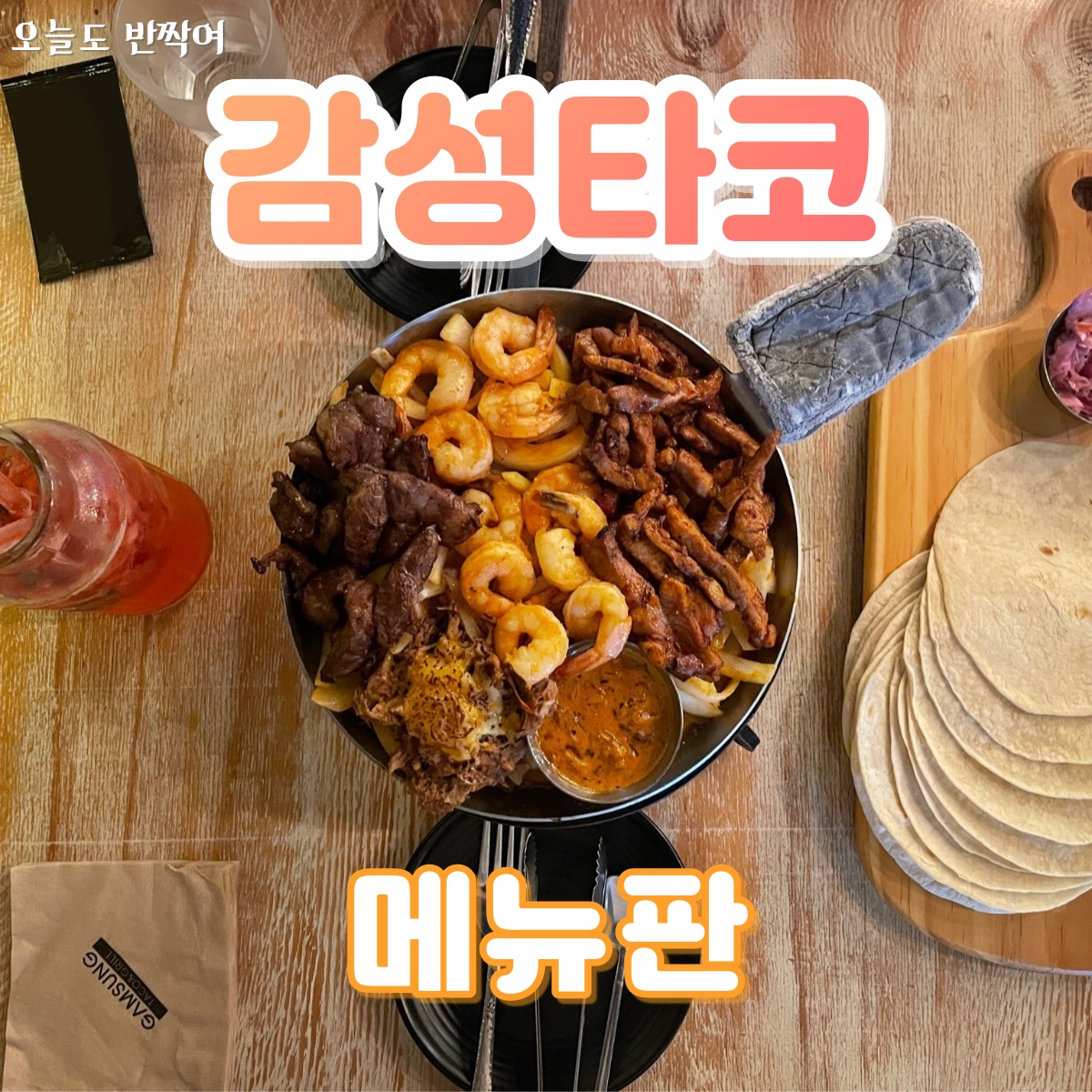 감성타코의 여러 가지 메뉴가 적혀있습니다.