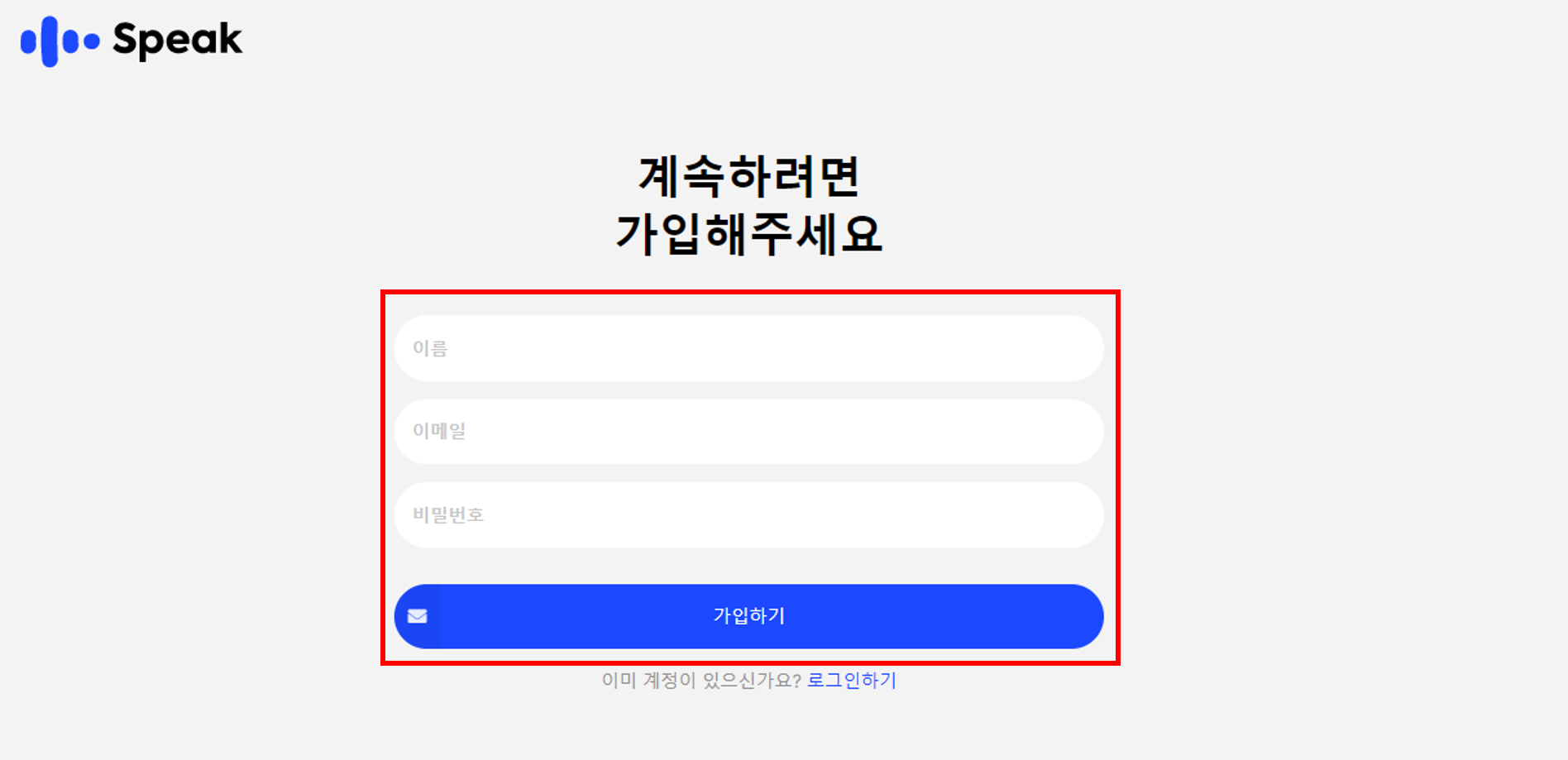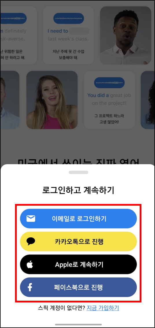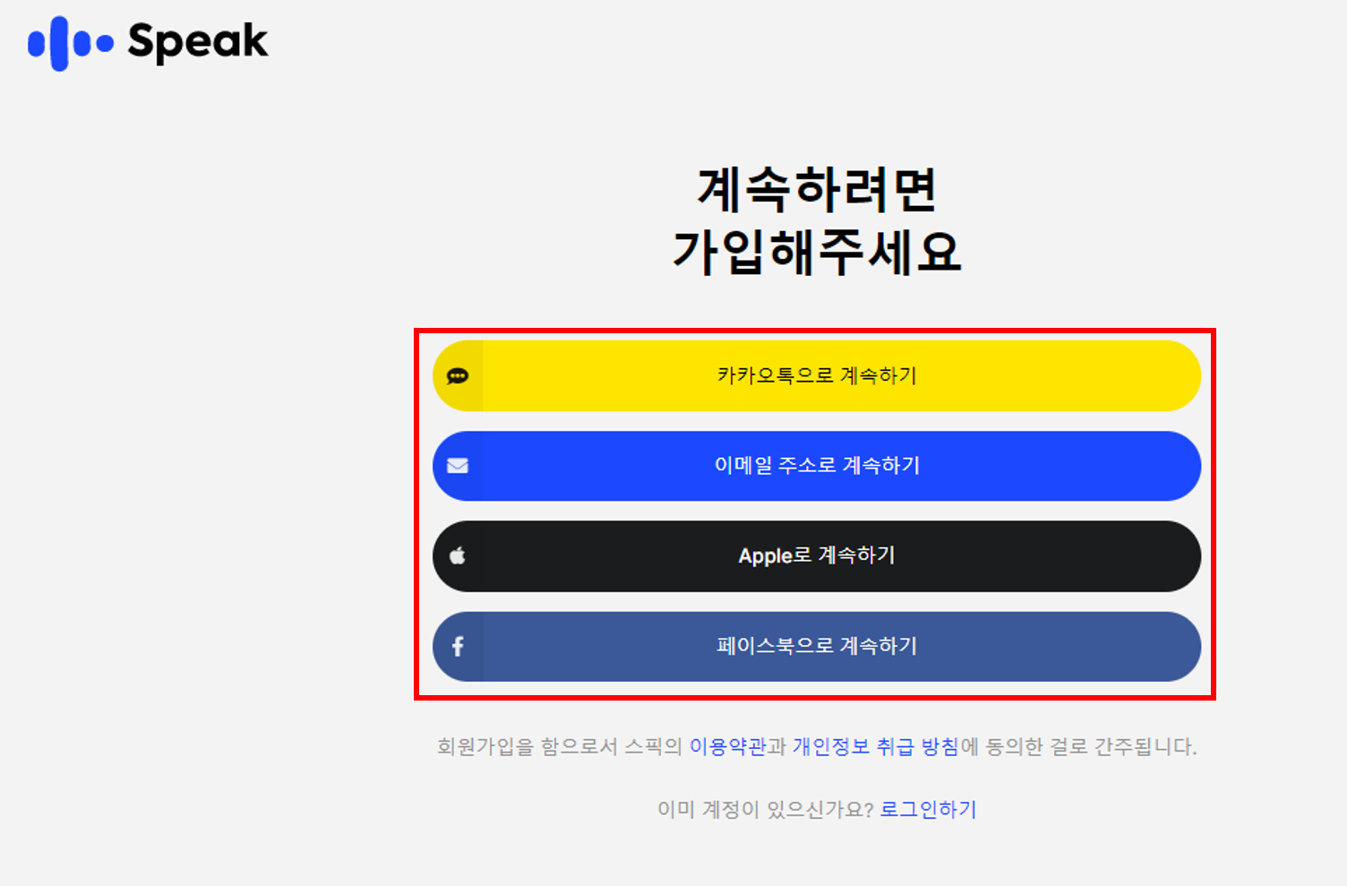이때, 스픽 앱이 아닌 방금 들어온 웹 링크에서 회원가입을 해야 합니다.