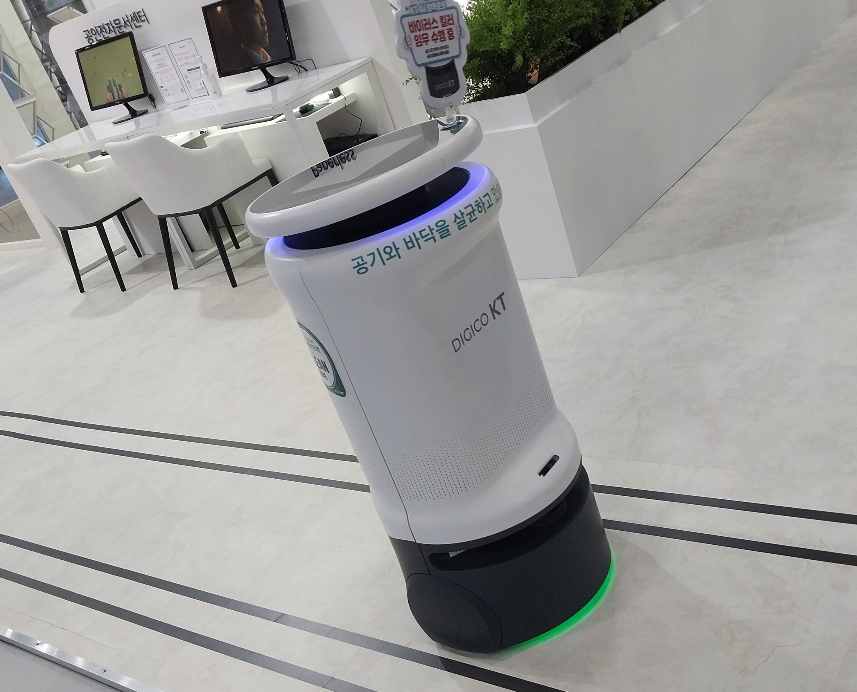 KT의 AI 방역 로봇이 작동하고 있었습니다.