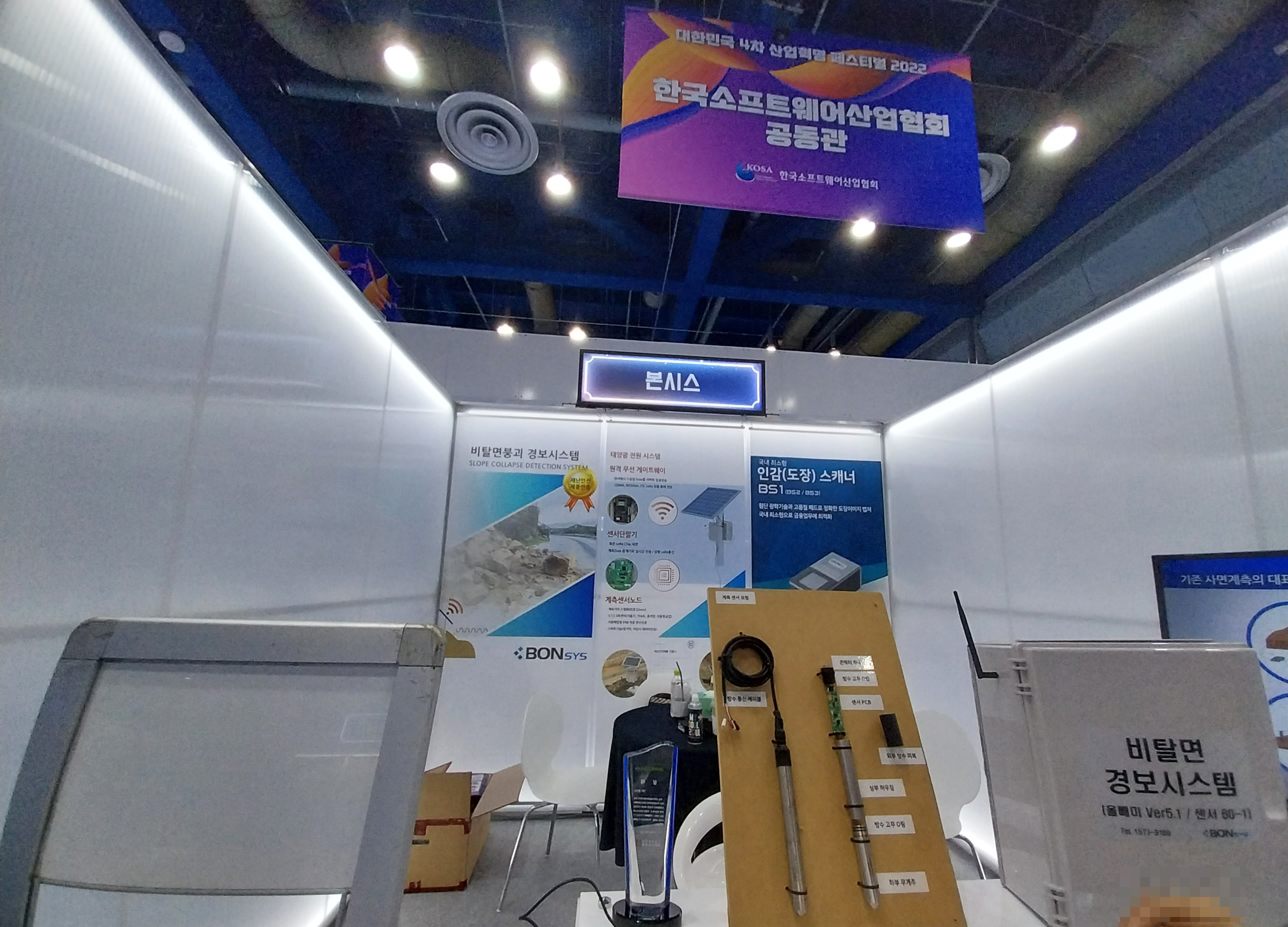 본시스 부스에서 '비탈면 붕괴 경보 시스템'과 '인감(도장) 스캐너' 제품에 대한 설명을 들었습니다.